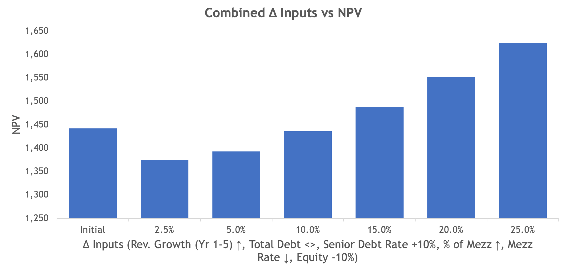 Individual Scenario Outputs: Output charts of the individual scenario analysis for each input variable.